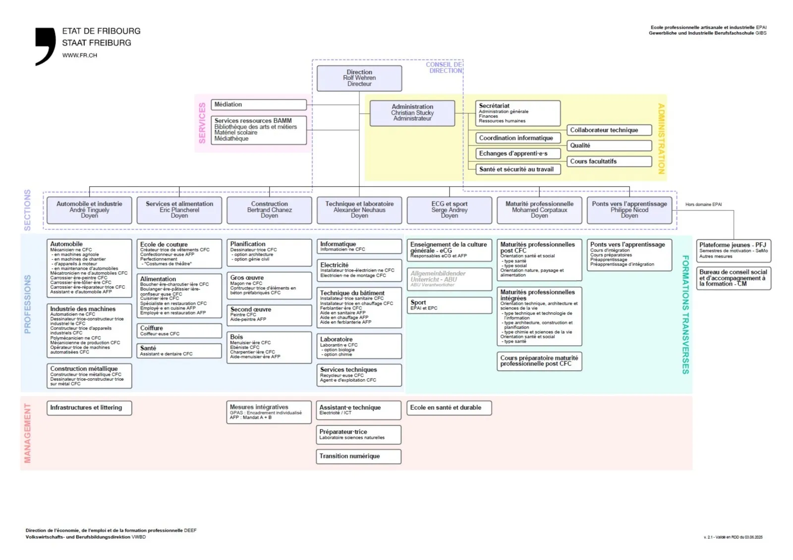 L'école professionnelle artisanale et industrielle (EPAI) compte 4 classes d'apprentis dessinateurs et dessinatrices en génie civil. Les bâtiments se situent à 5 min. à pied de la gare de Fribourg.